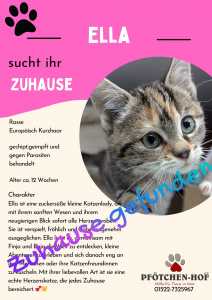 Jede Katze hat ihre eigene Geschichte manche beginnen traurig, doch diese Kätzchen haben alle ein glückliches Ende gefunden. In diesem Ordner möchten wir euch unsere bereits vermittelten Samtpfoten vorstellen.
