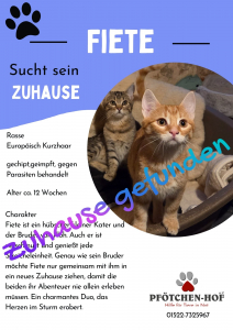 Jede Katze hat ihre eigene Geschichte manche beginnen traurig, doch diese Kätzchen haben alle ein glückliches Ende gefunden. In diesem Ordner möchten wir euch unsere bereits vermittelten Samtpfoten vorstellen.