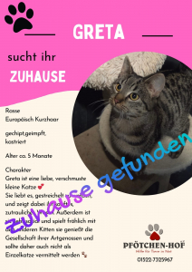 Sie alle haben ein liebevolles Zuhause gefunden, in dem sie nun sicher, geborgen und umsorgt leben dürfen. Für uns sind diese Geschichten nicht nur schöne Erinnerungen, sondern auch ein Ansporn, weiterhin für Katzen in Not da zu sein.